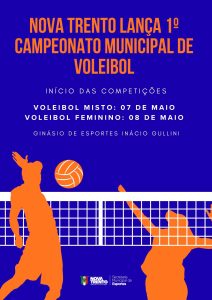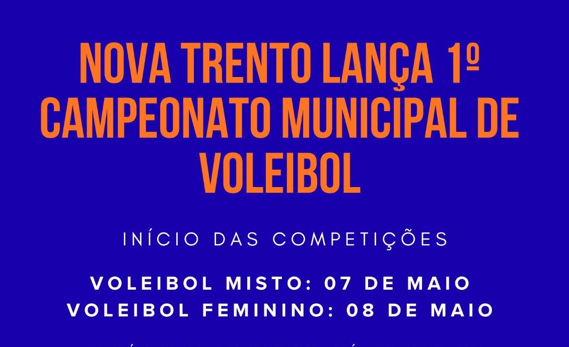 A Administração Municipal de Nova Trento, por meio da Secretaria de Esportes, anuncia a realização do 1º Campeonato Municipal de Voleibol Feminino e Misto 2026, ampliando o incentivo à modalidade que já é referência no município.