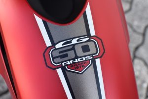 Para além do logo comemorativo “CG 50 ANOS” estampado no para-lama dianteiro e nas laterais, esta versão da CG 160 Titan foi produzida em exclusiva cor vermelha com inscrições alusivas à comemoração dos “50 ANOS” nas aletas laterais e tanque de combustível, além de trazer a chave e os amortecedores traseiros também em vermelho. A ideia dos designers foi a de realizar uma Honda CG160 Titan que será facilmente identificada como uma genuína “Special Edition”, distinta dos modelos de normal produção.