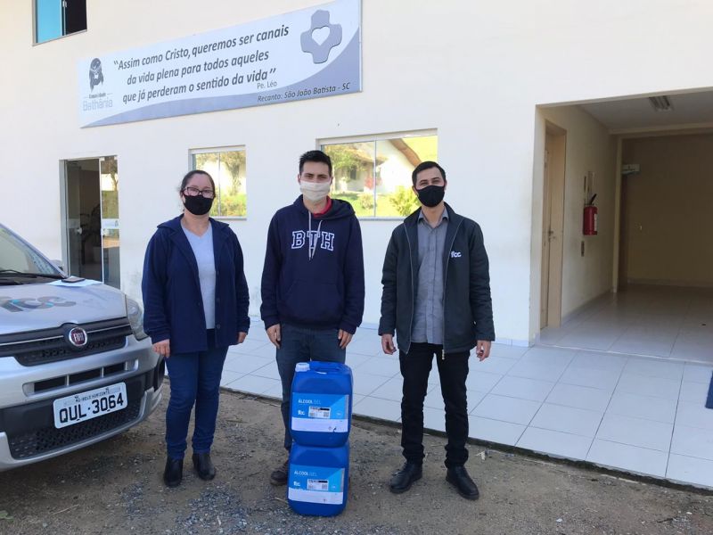 Uma doação de 500 litros de álcool 70% foi realizado pela empresa FCC Componentes para Calçados, para diversas entidades de São João Batista. Doação visa auxiliar no combate ao coronavírus na região.