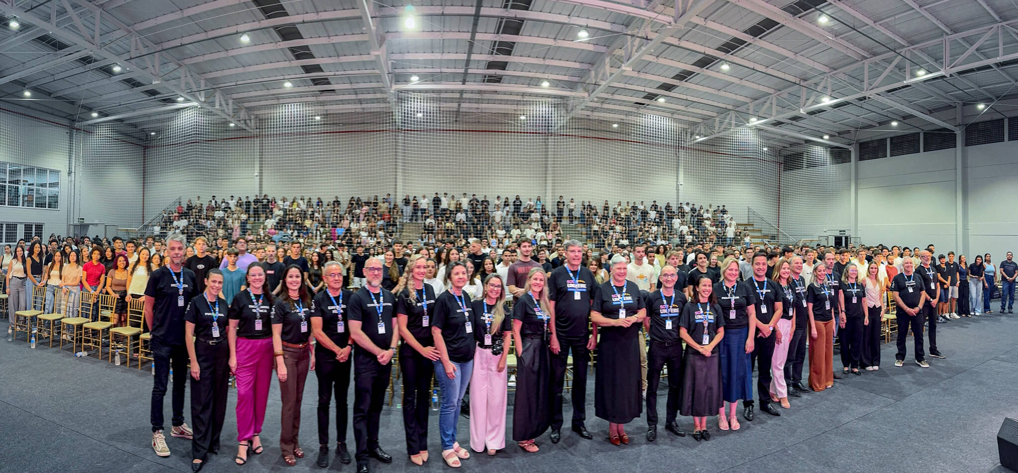 A recepção de calouros para o primeiro semestre de 2026 mobilizou toda a estrutura do campus Santa Terezinha da Unifebe na última quinta-feira, 5. A programação reuniu aproximadamente 860 novos acadêmicos, o maior número registrado pela instituição em um semestre, além de aproximadamente 700 familiares para roteiros especiais. Na atividade, eles puderam conhecer a infraestrutura dos laboratórios e as atividades desenvolvidas pelos mais de 20 cursos mantidos.