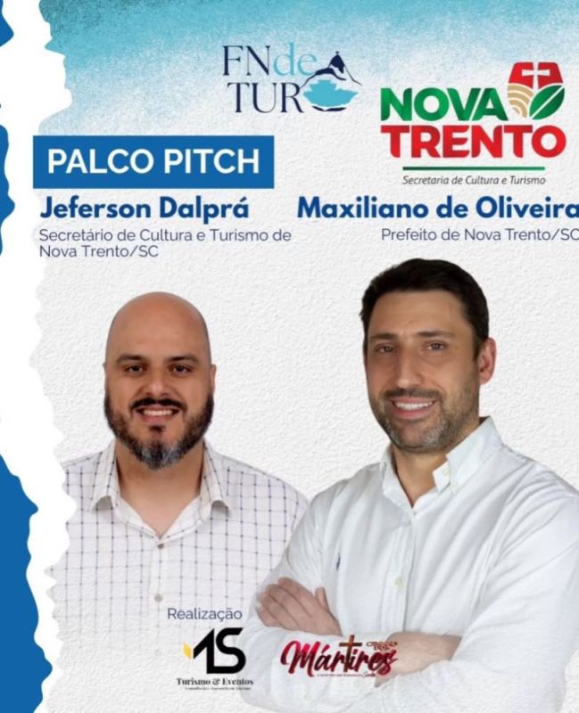 Representando o município, estarão presentes o prefeito Max de Oliveira e o secretário de Cultura e Turismo, Jeferson Dalprá, que levarão Nova Trento, a Capital Catarinense do Turismo Religioso, ao espaço nacional de debates, experiências e inovação no segmento.