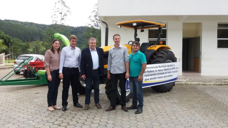 Prefeito de Major Gercino, Valmor Kammers, o Valmor do Pita, recebeu na nesta segunda-feira (08), visita do deputado federal Marco Tebaldi (PSDB). Além da entrega oficial de um trator, ensiladeira e grade aradoura, que estão expostos em frente do prédio da Administração Municipal, o deputado recebeu novas demandas dos majorenses.