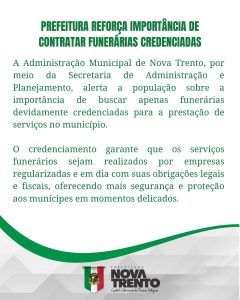 A Administração Municipal de Nova Trento, por meio da Secretaria de Administração e Planejamento, alerta a população sobre a importância de buscar apenas funerárias devidamente credenciadas para a prestação de serviços no município.