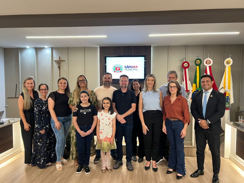 A proposta, que agora será apreciada do Legislativo Municipal, foi apresentada pelo secretário municipal de Educação, Alício Schiestel, pela diretora de Ensino Fundamental, Liliani Tomazoni, e pela presidente da comissão multissetorial, Rafaela Tamanini dos Santos.