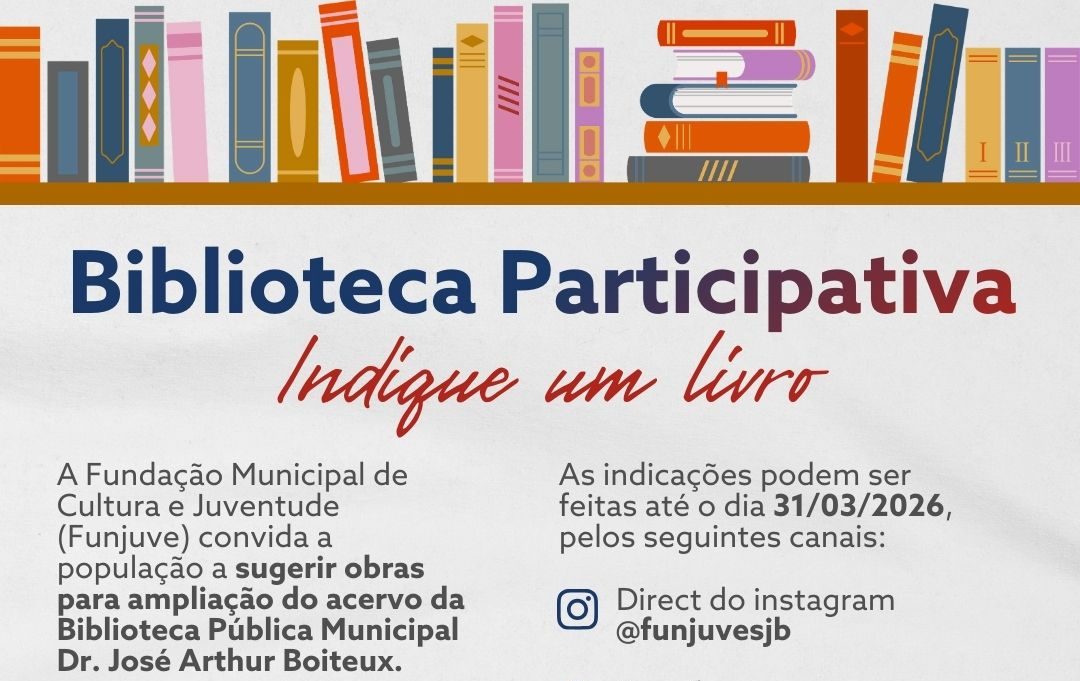 A Fundação Municipal de Cultura e Juventude de São João Batista (Funjuve) lançou a campanha “Biblioteca Colaborativa – Indique um Livro”. A iniciativa convida a comunidade a participar da escolha de novos títulos para a Biblioteca Pública Municipal Dr. José Arthur Boiteux.