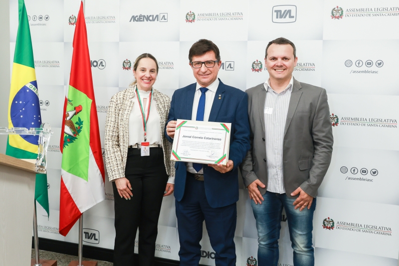 O deputado estadual Junior Cardoso prestou homenagem ao Jornal Correio Catarinense, de São João Batista, pela publicação de sua milésima edição. A homenagem foi entregue nesta terça-feira, 18, na Assembleia Legislativa de Santa Catarina.