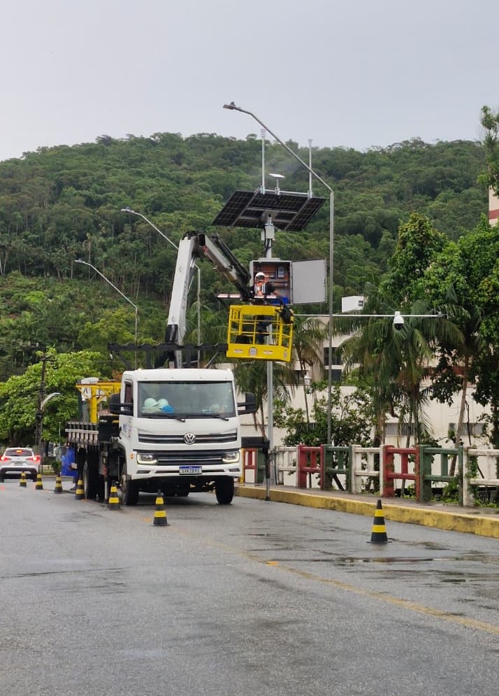O equipamento foi instalado e ativado na ponte próxima à Praça Getúlio Vargas, reforçando o monitoramento climático e a segurança da população.