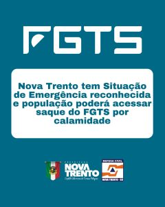 Com o reconhecimento, os trabalhadores residentes em Nova Trento poderão solicitar o saque do FGTS por calamidade pública, diretamente pelo aplicativo oficial do FGTS.