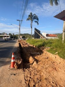 A obra contempla a implantação de tubulação de 110mm em ambos os lados das calçadas, com o objetivo de aumentar gradativamente a pressão da água e garantir o atendimento da demanda da localidade.